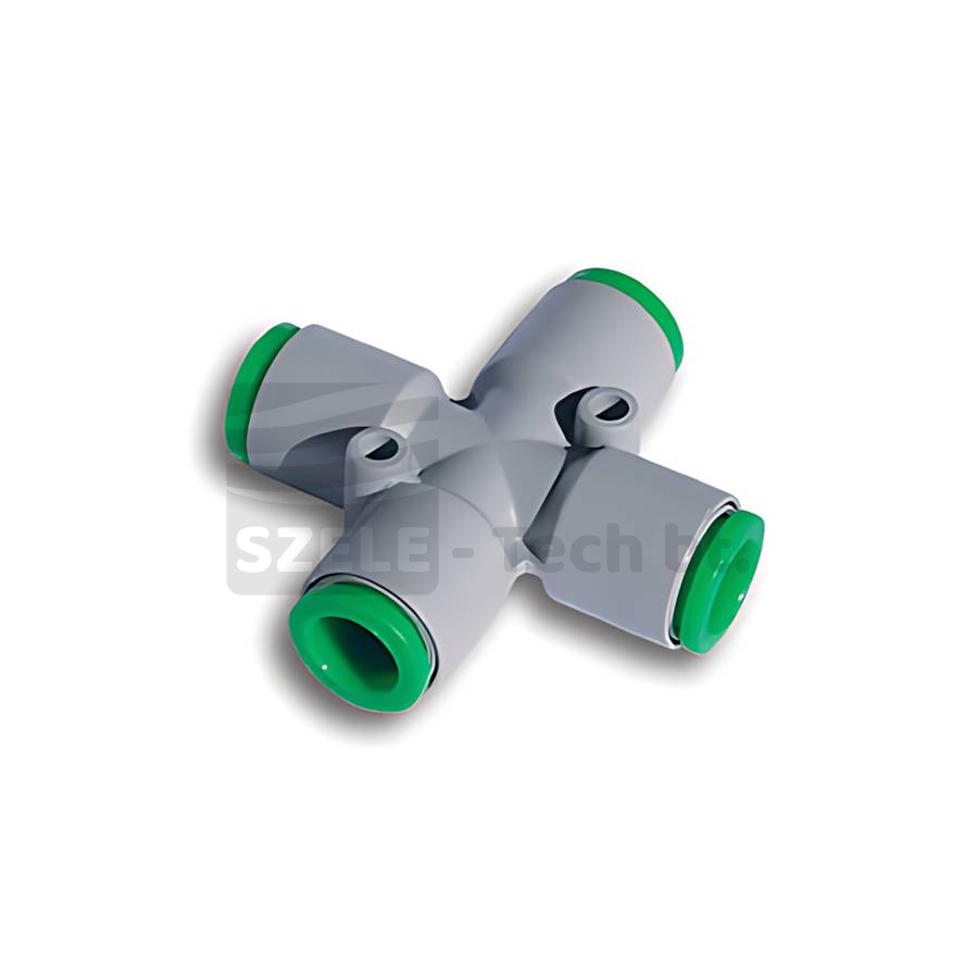 Ez a kereszt csatlakozó akkor nyújt igazán praktikus megoldást, amikor egy csőrendszeren belül több irányba kell elosztani a vezetéket, miközben fontos az átlátható és rendezett kialakítás. Segít egyszerre több ág csatlakoztatásában anélkül, hogy bonyolult szerelvényekre lenne szükség. A POM copolymer anyag könnyű, mégis strapabíró és korróziómentes, így jól használható mind ipari, mind műszaki környezetben.